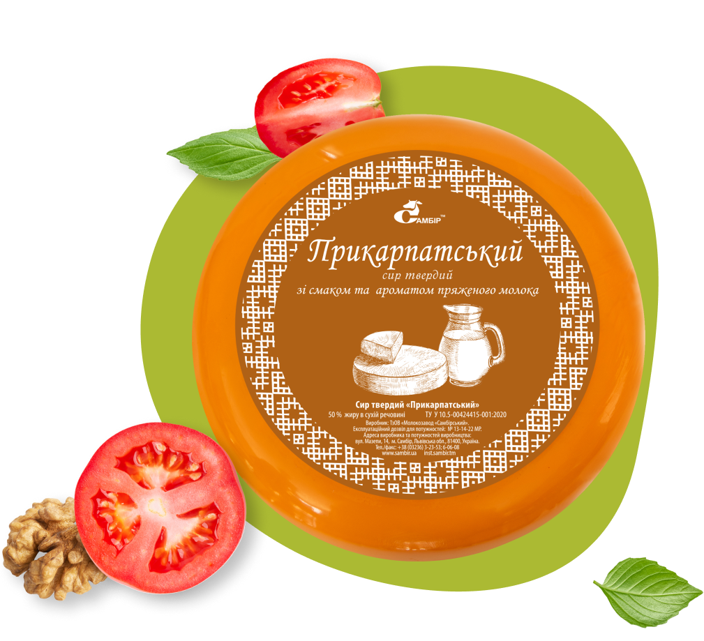 Сир твердий у плівці зі смаком та ароматом пряженого молока, 50% жиру