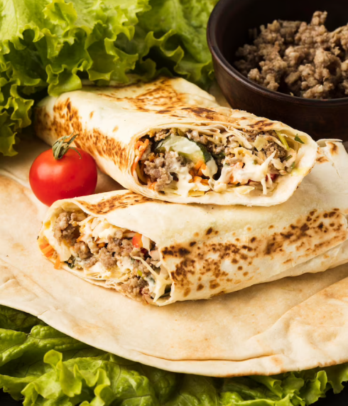 Лаваш виглядає як обгорнутий подарунок, який розкриває свою смакову суть з кожним укусом. Від вишуканої презентації до глибокого смаку – ця страва викликає відчуття задоволення і вдячності за поєднання таких різноманітних інгредієнтів.